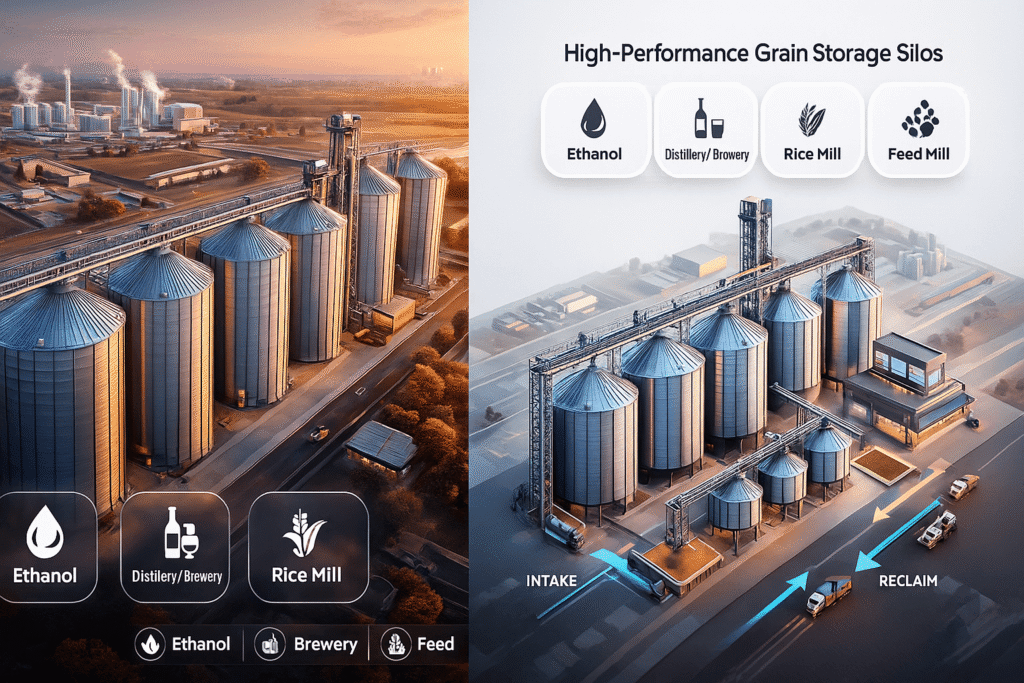 In modern agri-processing, reliable grain storage is the backbone of efficient production. Whether you run an ethanol plant, distillery, brewery, rice mill, or feed mill, the quality of your raw material determines the quality of your final product.